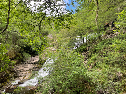 記得記得預留足夠時間到Sgwd Yr Eira!竟然可以走到瀑布的後面!陽光照射閃耀下,瀑底還掛有小彩虹,美不勝收。不過此瀑太受歡迎,比前兩個多了點喧鬧,人多的日子可能難以盡興了。